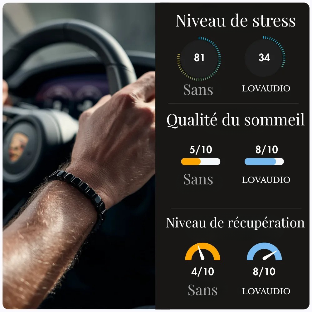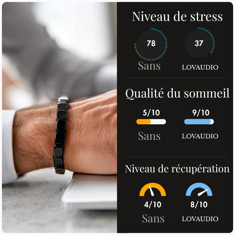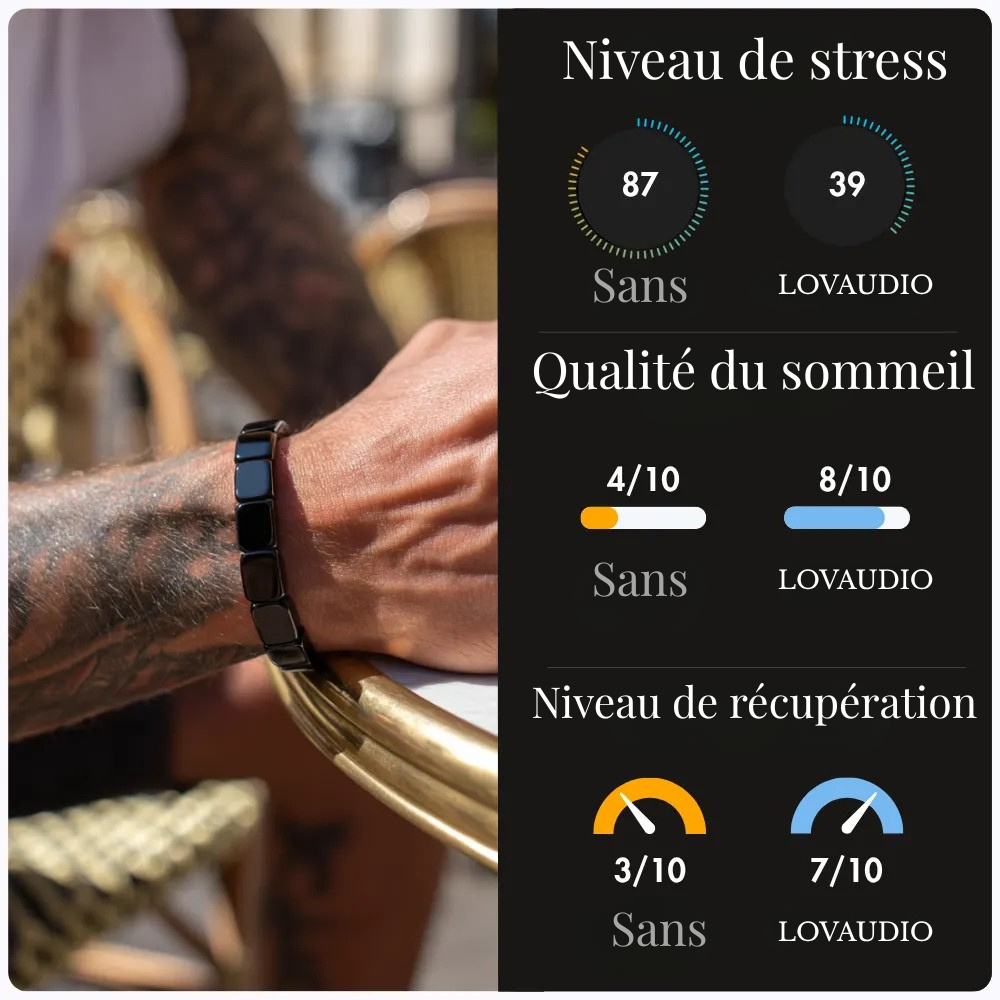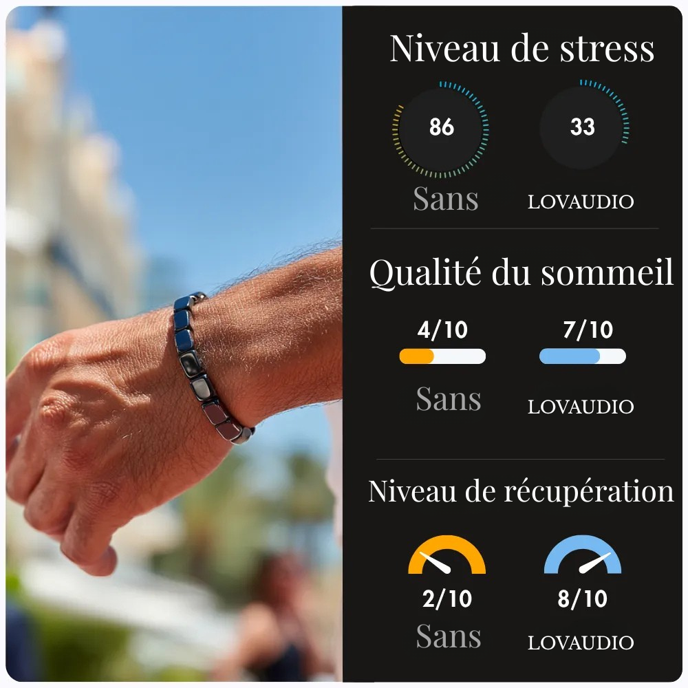 Mathieu D.VerifiéSommeil réparateur“Nuits plus profondes, réveils clairs. J’adore.”LOVAUDIO™|Bracelet Hematite