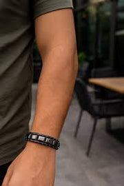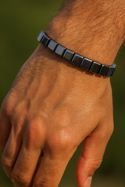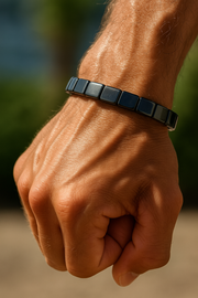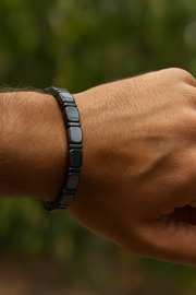 Redécouvre ta force naturelle avec Lovaudio™, le premier bracelet masculin conçu en hématite pure.